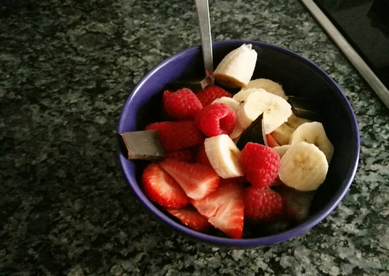 - Añadir canela al gusto y la fruta cortada. Añadir también el chocolate.