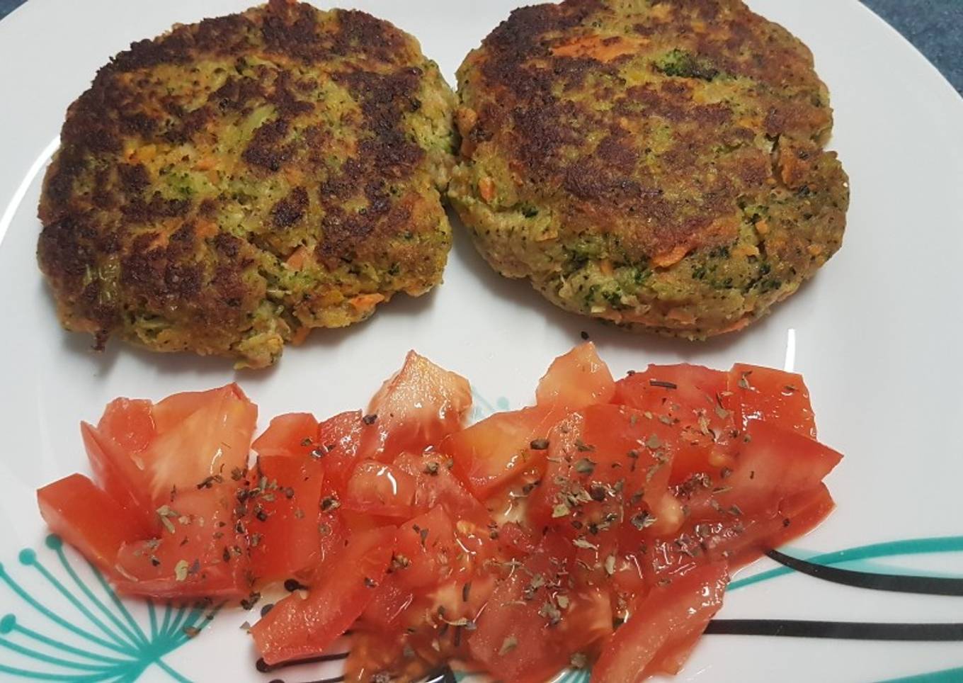 Hamburguesas de pollo, brócoli y zanahoria