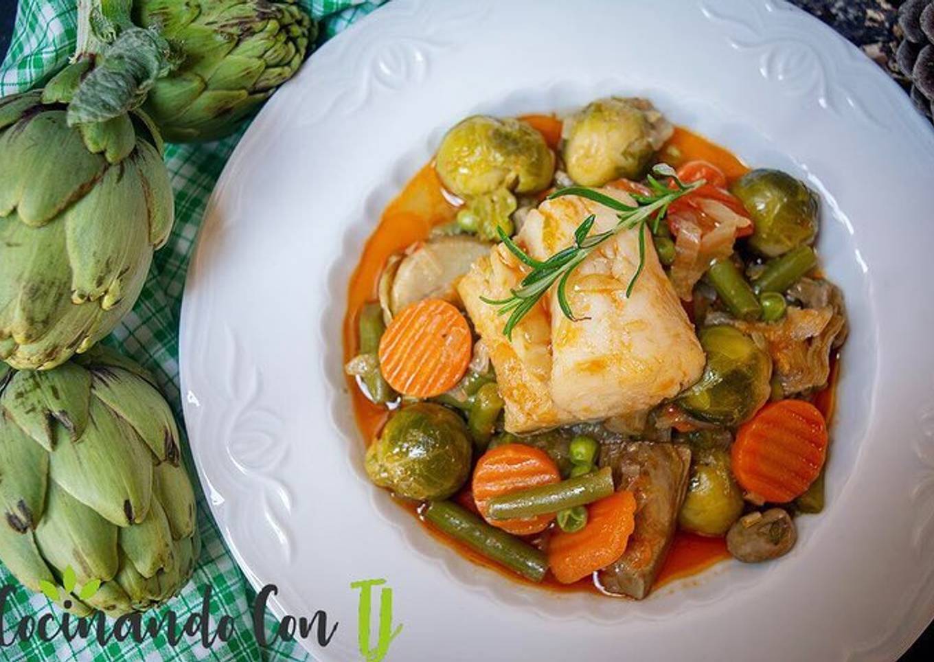 De vez en cuando me gusta preparar un buen plato de menestra. La mayoría de veces la hago con carne pero esta vez me apetecería probar con el pescado.