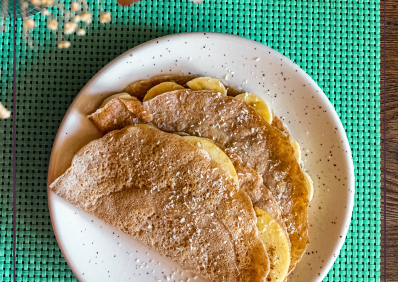 Crepes integrales sin azúcar con crema de cacahuete y fruta🍎