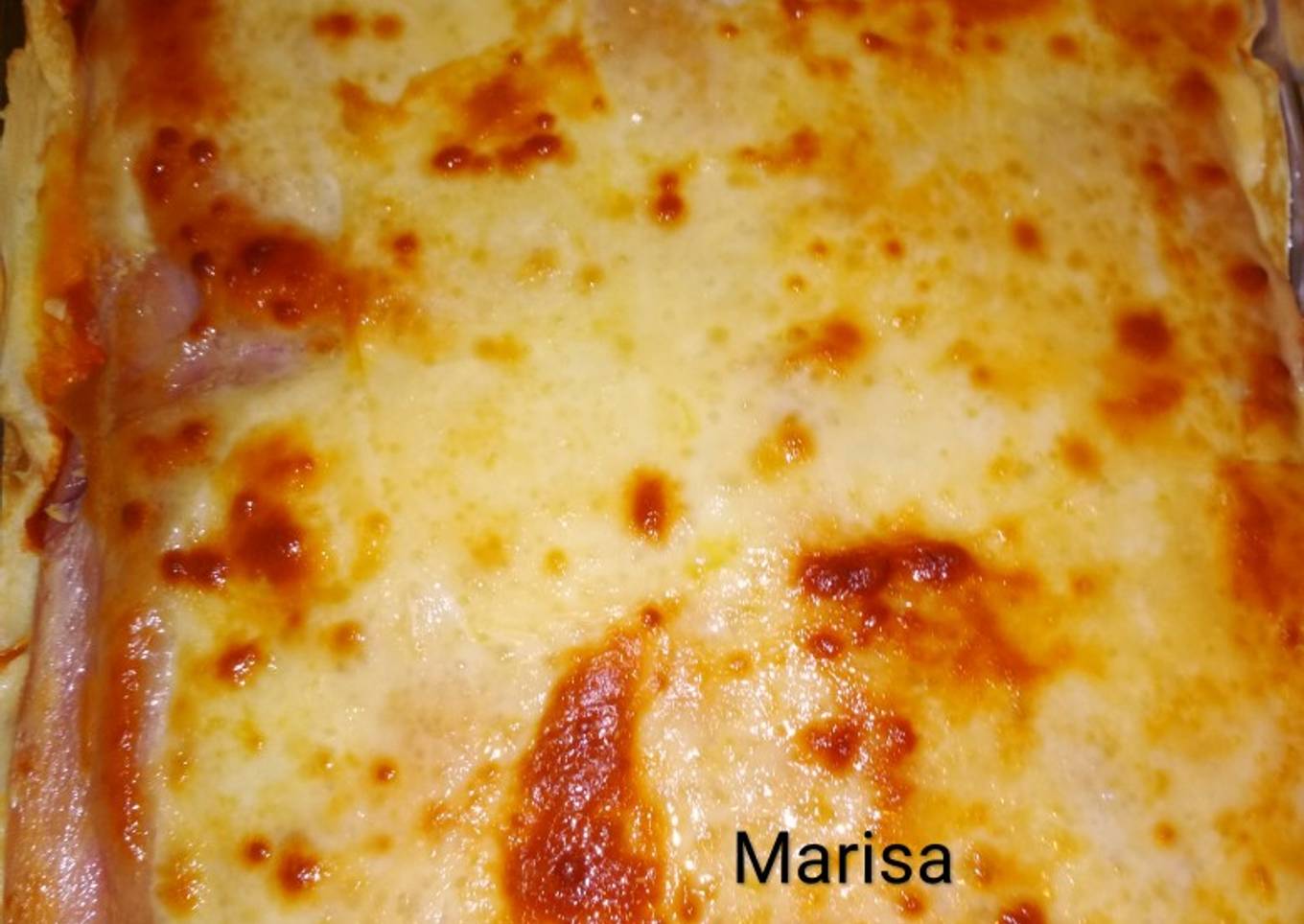 - Encima del jamón 1 capa de mozzarella