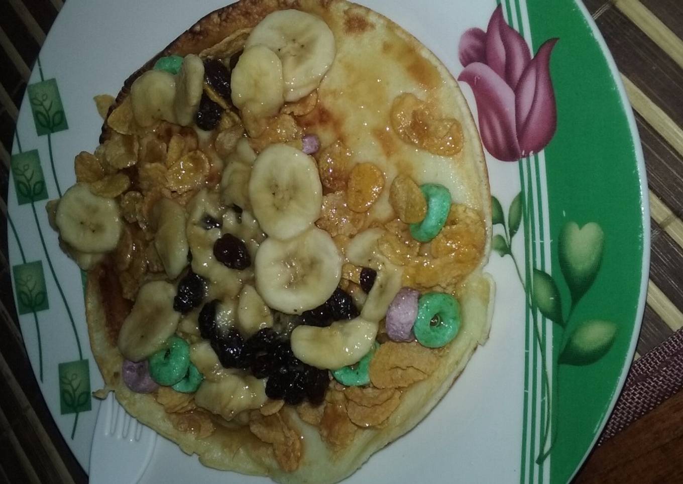 - Colocar el crep en un plato, dos cucharadas de cereal (pueden ser más ai lo prefiere) y verter la preparación de la miel.