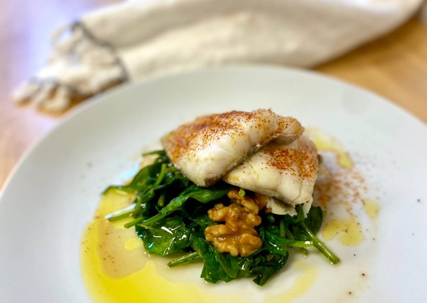 Bacalao con espinacas y nueces