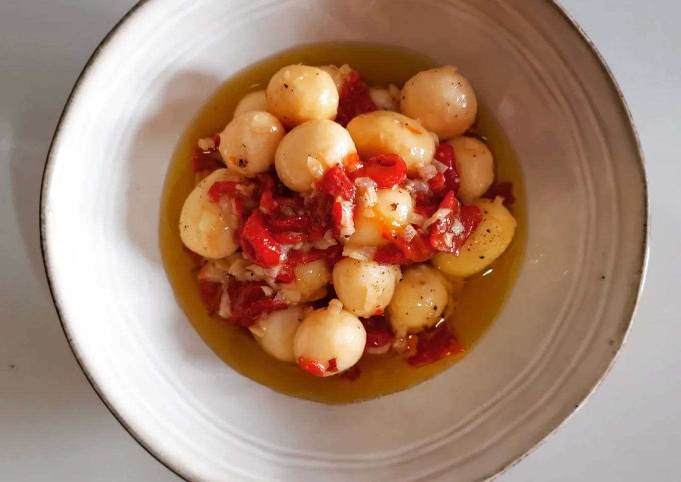 Ensalada de patata con pimientos y vinagreta de ajo escalivado