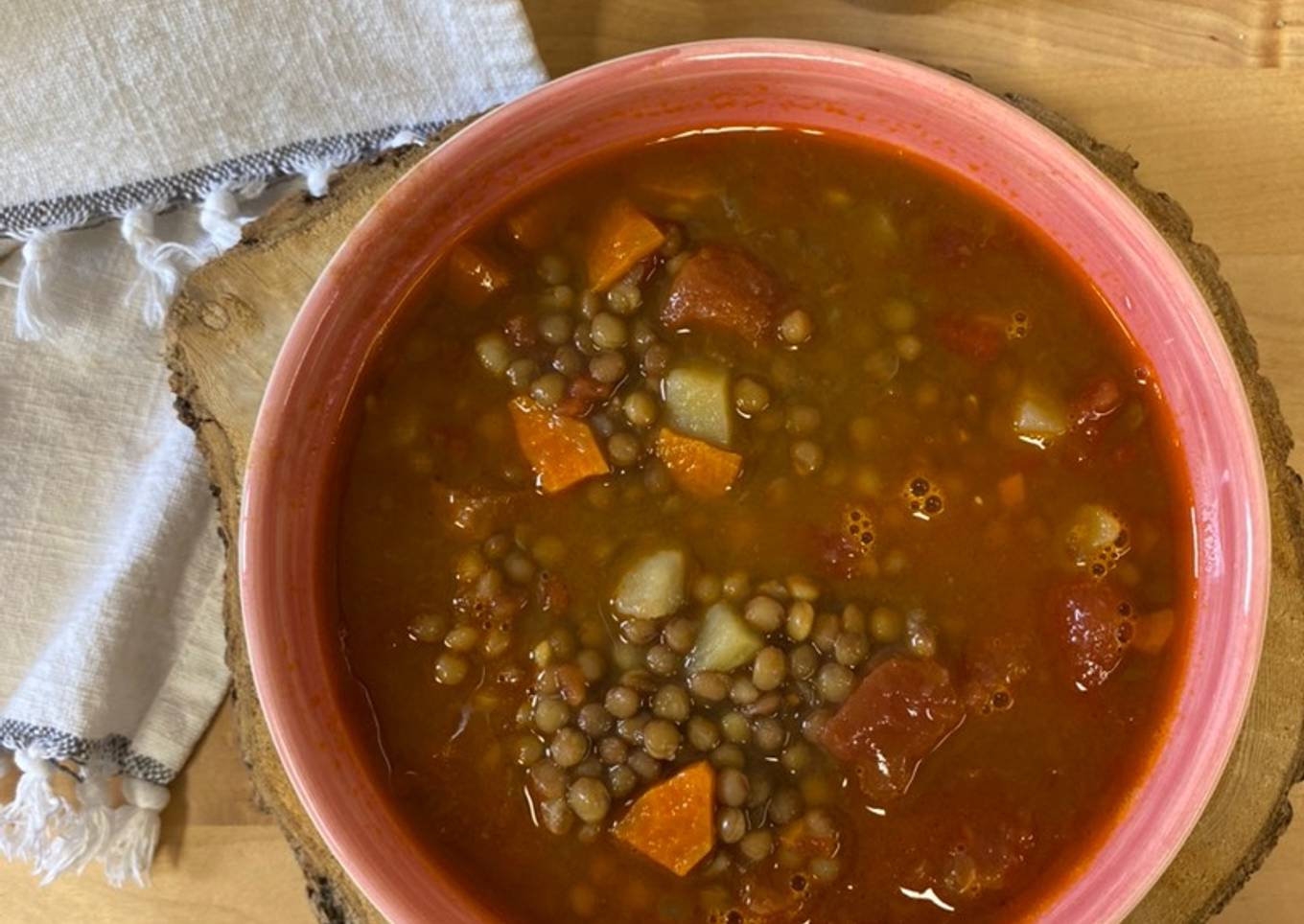 Mis lentejas en versi贸n vegana, solo con verduras: zanahoria, patata y tomate.